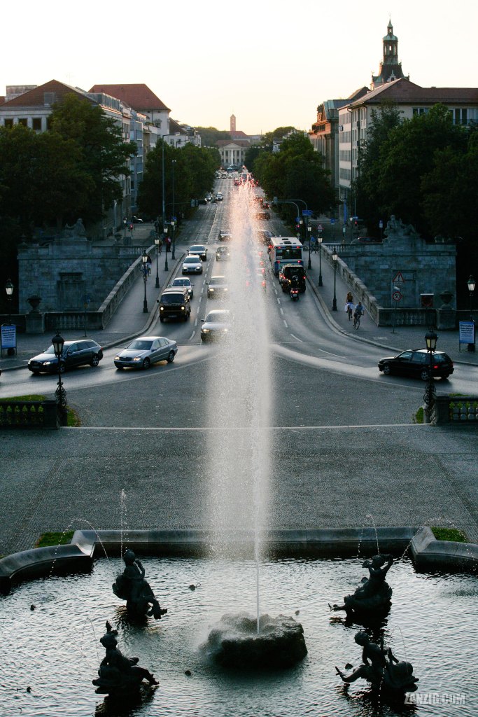 From the ‘Angel of Peace’ (Friedensengel) monument in Munich, Germany, I had a terrific view along the Prinzregentenstrasse, with the Prinz-Carl-Palais at its very end, the Luitpoldbrücke in the front and the large fountain right in front of me.