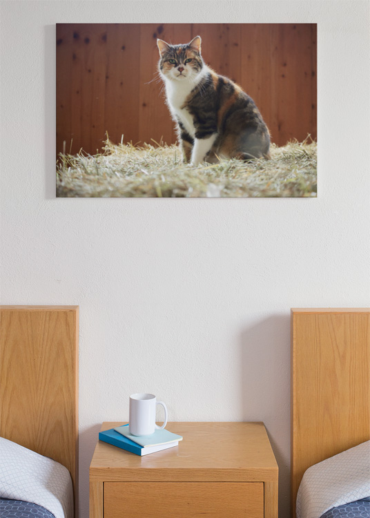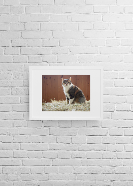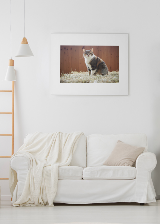 OCTOBER 2025 – A cat on a hay bale looks directly at the photographer in the stables of Fohlenhof Ebbs in Austria. Photo © Mark Zanzig/zanzig.com