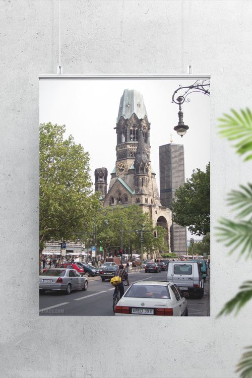 Here’s an interesting shot along the Kurfürstendamm in Berlin, Germany, which is also known as the ‘High Street’ of the city with the Breitscheidplatz and the Kaiser Wilhelm Memorial Church (Gedächtniskirche in German). It’s a historic and iconic church (The official Berlin site has the details.)