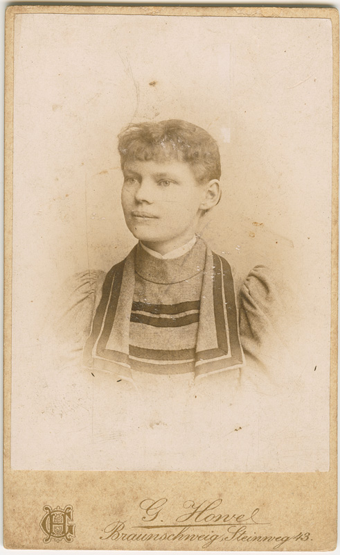 Here’s an undated cabinet photo that was part of the Schütze-Oßwald lot I acquired a while ago. This studio portrait was shot by Gustav Howe in Braunschweig where he has been mentioned in regional address books between approximately 1885 and 1895.