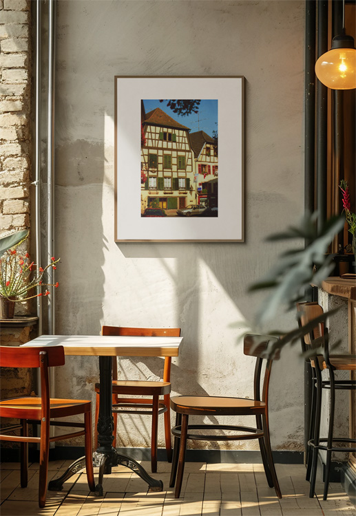 SEPTEMBER 2001 – The afternoon sun illuminates the historic house at 1 Grand-Rue de l’Église in Ribeauvillé, Alsace, France. © Mark Zanzig/zanzig.com