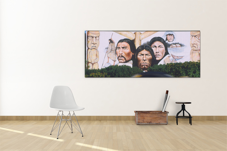 AUGUST 2002 – A mural of First Nation’s Chiefs at Mill Street in Chemainus on Vancouver Island, B.C., Canada. © Mark Zanzig/zanzig.com