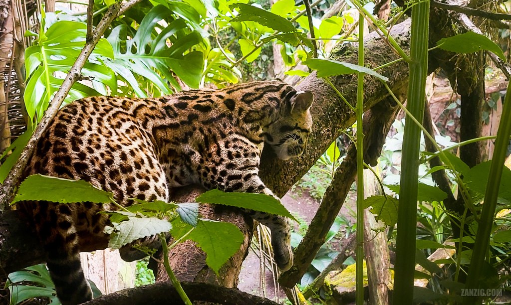 SEPTEMBER 2025 – A young leopard rests on a tree in the rain forest of Gondwanaland in Leipzig. Photo © Mark Zanzig/zanzig.com