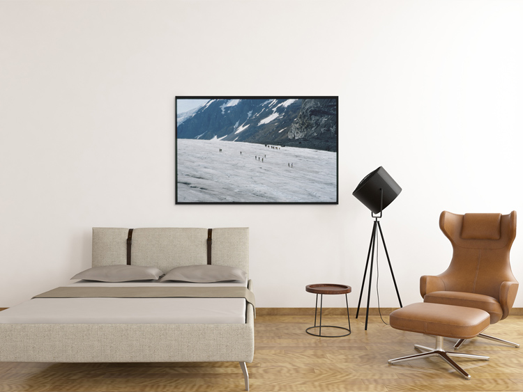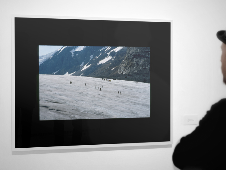I used the tele lens for this photo which further shrinks the folks who cautiously walked on the frozen surface of the glacier. One guy (probably a guide) was even wearing shorts!