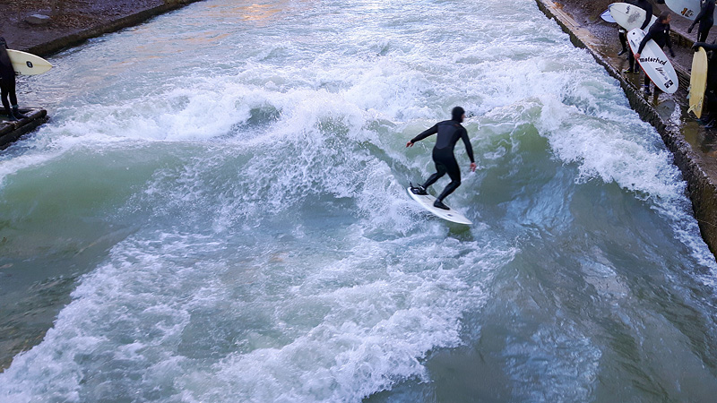 Our first walk in the year of 2022 took us to the English Garden in Munich. It was a cold, but beautiful and sunny day. We started our walk at the southern tip of the park at the point known as Eisbachwelle where the small river got really fast and formed a wave enabling wave riding. After a deadly incident in 2025, the city of Munich decided to remove the elements from the fround of the river that created the wave. Read all about the Eisbach and its history at Wikipedia (in German.)