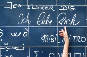 When we left the Metro station Abbesses for a short hike towards the Basilique du Sacré-Cœur we took a few extra steps to the Square Jehan Rictus to admire an impressive artwork by Frédéric Baron and Claire Kito called Le mur des je t’aime. It is a huge wall of tiles that shows 300+ translations of the term ‘je t’aime’ (‘I Love You’). Wow. The German Wikipedia has a longer entry covering the artwork (in German.)