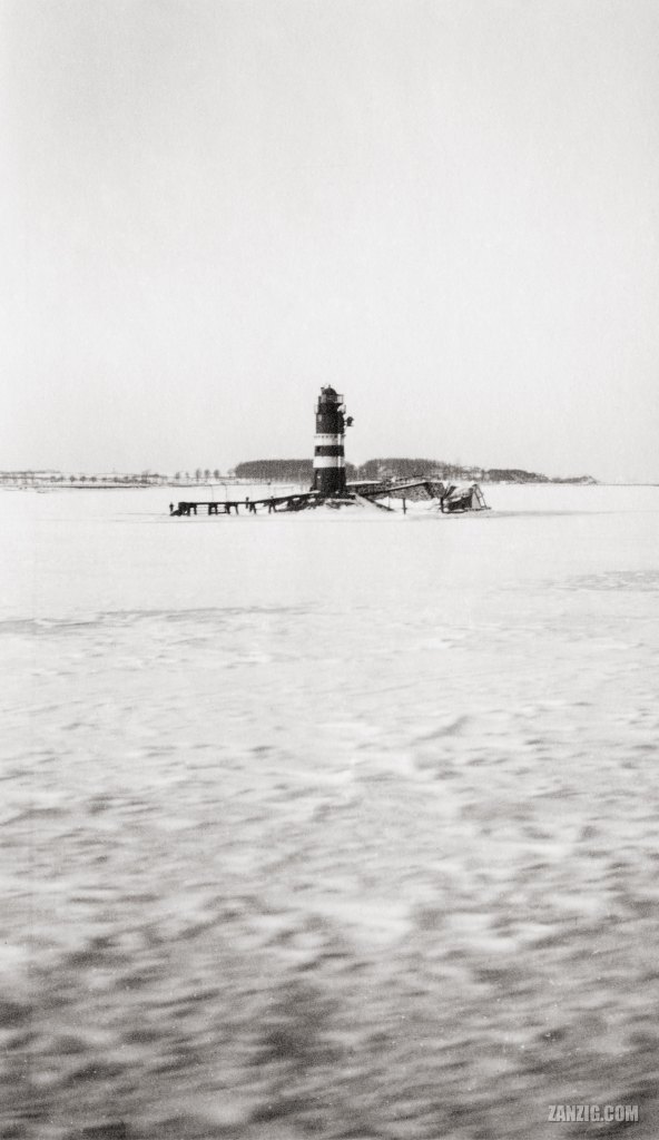 1929 – The lighthouse in Friedrichsort is surrounded by thick ice in Kiel, Germany. Scan © Mark Zanzig/zanzig.com