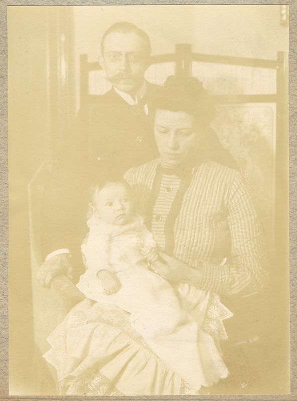 The image belongs to a small set of images taken in or around 1910 that are clearly efforts to learn the technique of photography in various situations. I write that because the images do not even remotely achieve the quality levels of professional photographers in 1910. Several images show self portraits (or, to stick with modern terms, Selfies) and/or private situations, e.g. at home in the library or living room, hanging the laundry to dry, in the snow or under the Christmas Tree.