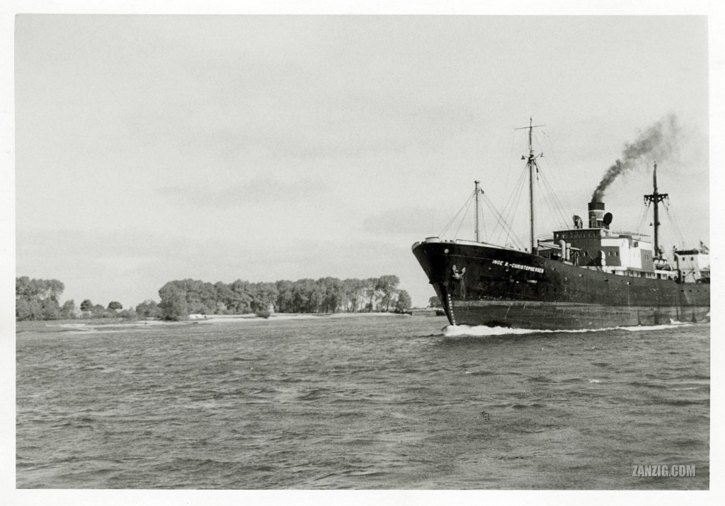 AUGUST 1956 – The cargo ship Inge R.-Christophersen near Bremerhaven in Germany. © Mark Zanzig/zanzig.com