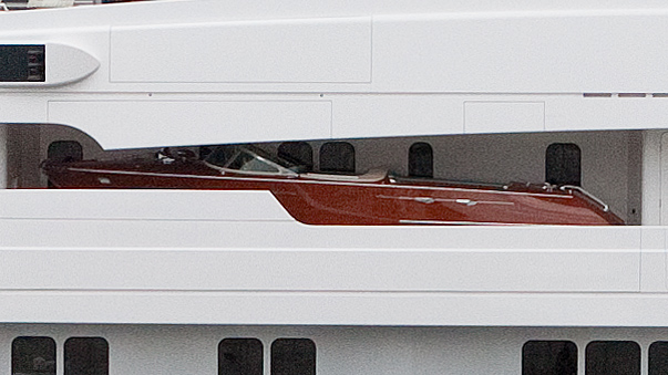 One (not so small) detail blew me away: on the first level a speedboat was tucked away, apparently to get passengers to and from a harbour (or beach) when the yacht has to anchor outside of the destination. Wow.