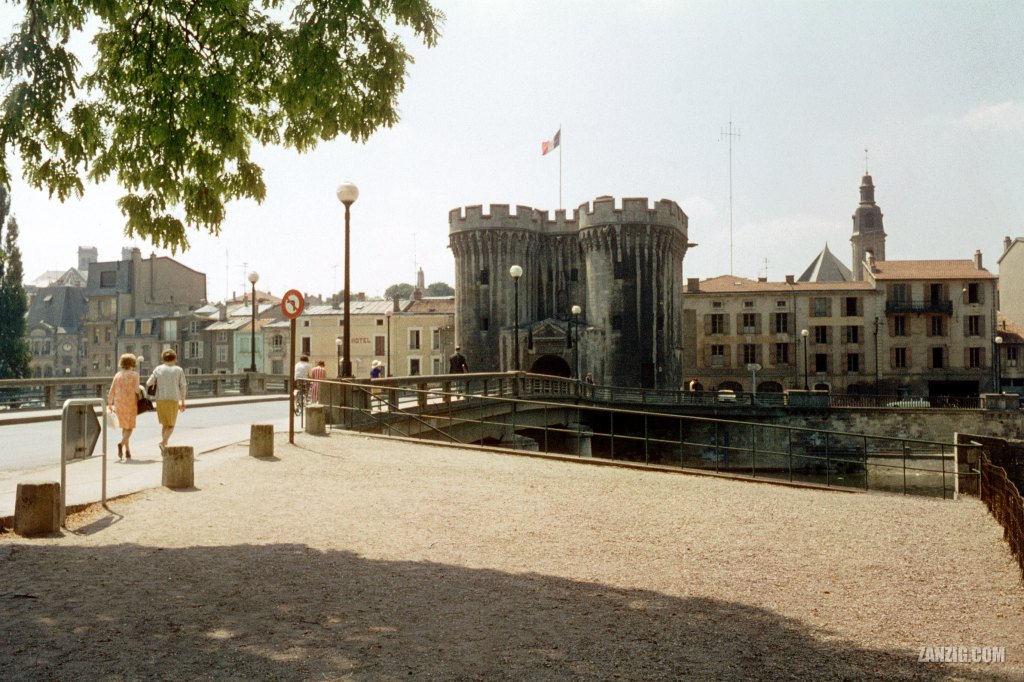 C. 1960 – Pont Chaussée, Porte Chaussée and Tour Chaussée in Verdun, France, on a sunny summer day. Scan © Mark Zanzig