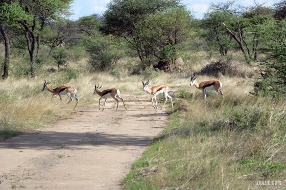 NOVEMBER 2006 – A herd of four Springbok cross the road near Otjiwarongo in Namibia. © Mark Zanzig/zanzig.com