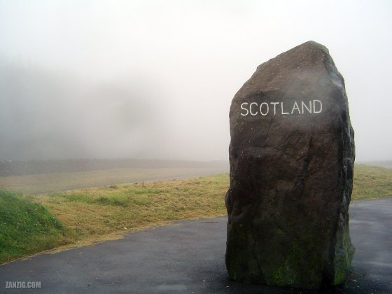 JULY 2005 – The borderstone next to the A68 between England and Scotland on a rainy day. © Mark Zanzig/zanzig.com