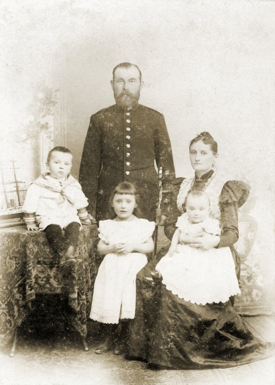 1894 – A cabinet photo shows the Marcus family in Kiel Friedrichsort, Germany. Photo: Hugo Lasch, Kiel