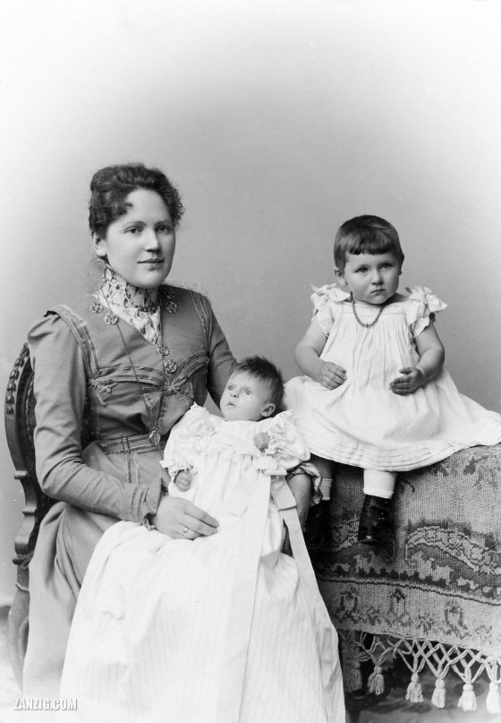 OCTOBER 1900 – Portrait of Magdalena Billström (34), born Pölckow, with two girls in Kiel in Germany. © by Mark … More