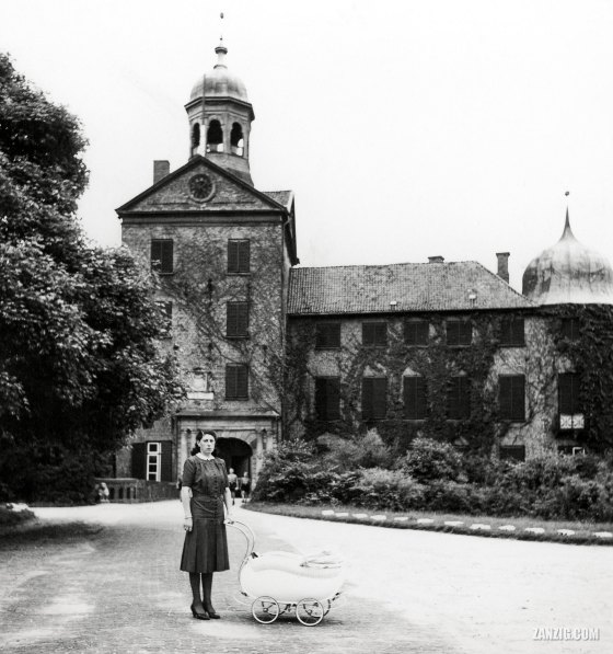 JULY 1942 – Edith Schweim with a stroller in front of Castle Eutin in Germany. © Mark Zanzig/zanzig.com
