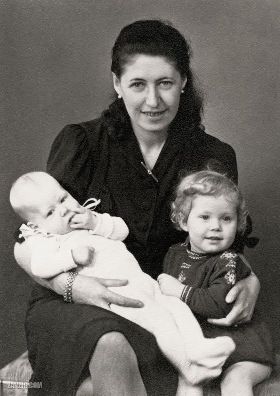 DECEMBER 1942 – Edith Schweim with her kids Editha (left) and Inga explore Christmas gifts in their home in Kiel, … More