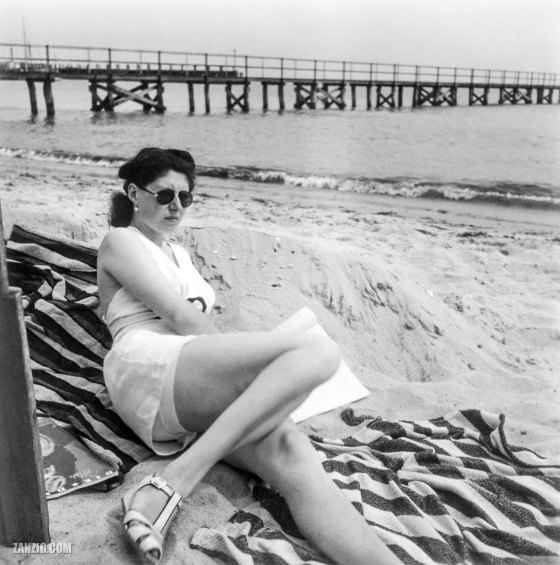 1943 – Edith Schweim (37) poses with a cool look at the beach of St. Peter Ording in Northern Germany. … More