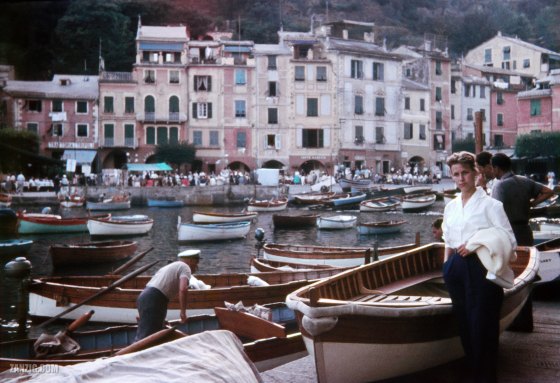 1958 – A woman poses for the photographer at the harbour of Cattolica in Italy. Scan & Edit © Mark … More