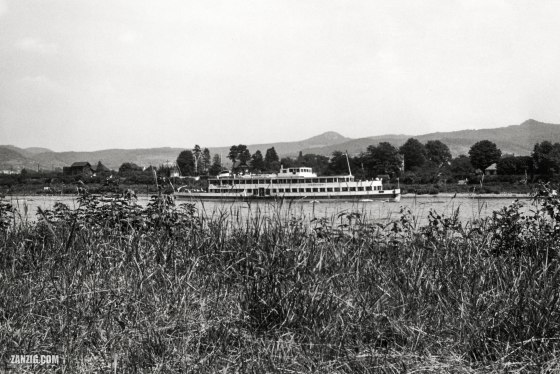 SPRING 1960 – Steamer Wiesbaden on the river Rhine at Oberwinter, Germany, on a sunny day. © Mark Zanzig/zanzig.com