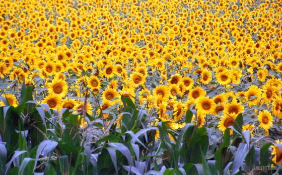 AUGUST 1988 – Field of sunflowers near Bordeaux, France. Photo © by Mark Zanzig/zanzig.com