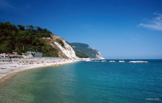 SEPTEMBER 2000 – Spiagga di Numana Alta in Italy, seen from the harbour of Numana. Photo © Mark Zanzig/zanzig.com