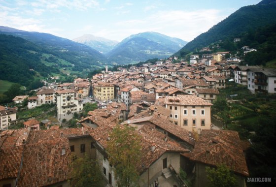 AUGUST 2000 – The secluded mountain village Bagolino in Italy in the late afternoon, seen from the Parrocchia Di Bagolino. … More