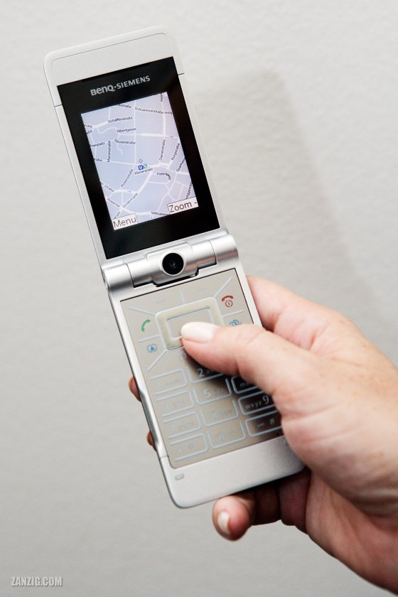 SEPTEMBER 2006 – A BenQ Siemens EF81 mobile phone shows a map application. Photo © Mark Zanzig/zanzig.com