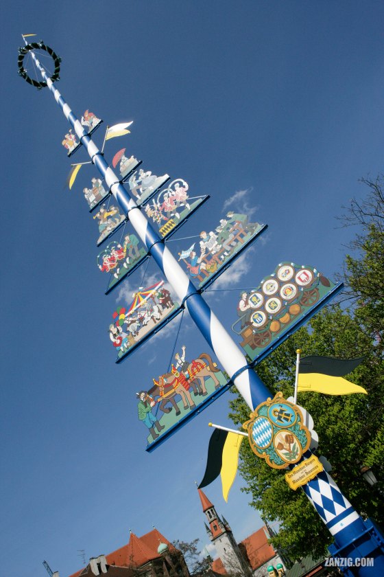 MAY 2006 – The traditional Maibaum (May Tree) marks the center of the Viktualienmarkt in Munich, Germany. Photo © by … More