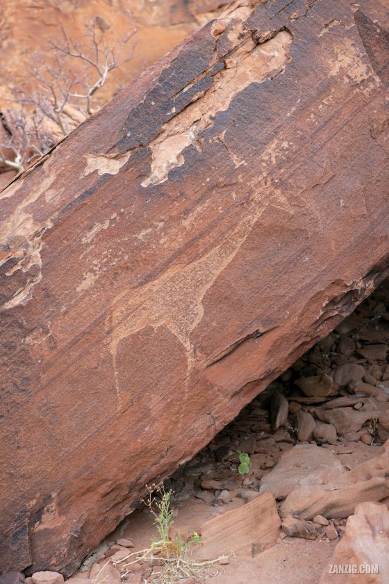 DECEMBER 2006 – Ancient engraveing of a giraffe at Twyvelfontein, a World Heritage Site. © Mark Zanzig/zanzig.com