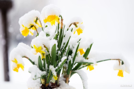 APRIL 2012 – Daffodils are covered by heavy snow after an unusually cold night that brought some late snow to … More