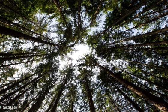 SEPTEMBER 2021 – A view straight up in a forest near St. Quirin, Bavaria, Germany. Photo © Mark Zanzig/zanzig.com