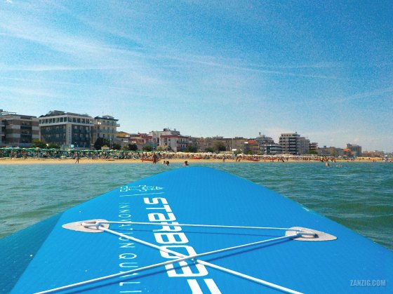 SEPTEMBER 2022 – Approaching the beach of Bellaria Igea Marina near Rimini, Italy, on a Stand-Up-Paddle (SUP) board. Photo © … More
