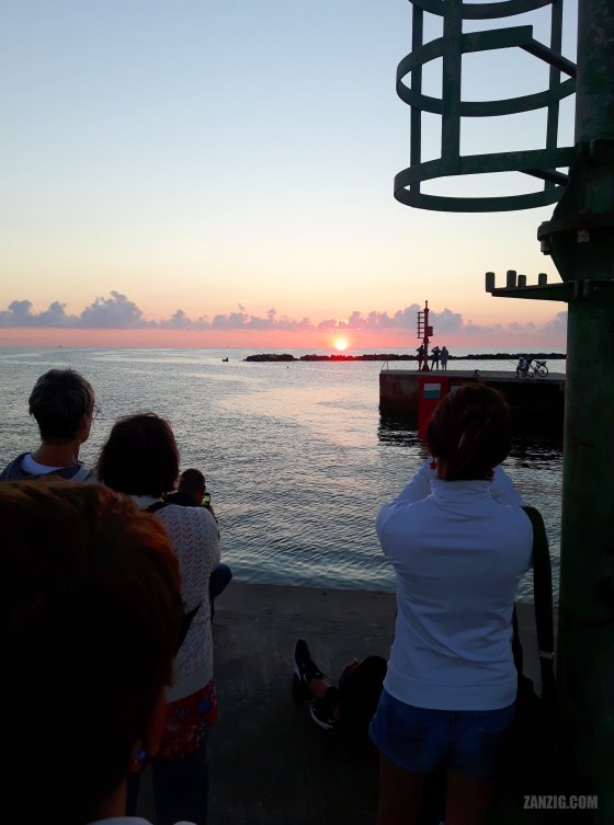 SEPTEMBER 2022 – Tourists watch the sunrise at the entry to the harbour of Bellaria Igea Marina near Rimini, Italy. … More