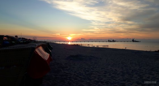 AUGUST 2023 – The sun rises over the beach of Grömitz in Germany. Photo © Mark Zanzig/zanzig.com