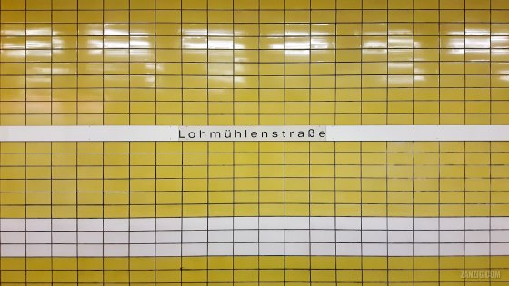 AUGUST 2023 – The subway station Lohmühlenstraße in Hamburg, Germany, features white and yellow tiles. Photo © Mark Zanzig/zanzig.com