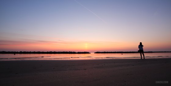 SEPTEMBER 2024 – A woman photographs the sunrise at the beach of Bellaria Igea Marina, Italy. Photo © Mark Zanzig/zanzig.com