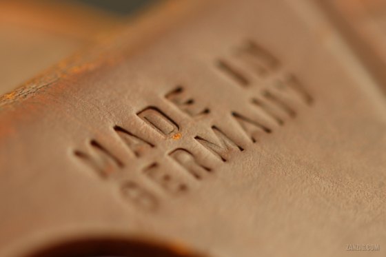 NOVEMBER 2024 – Macro photo of an embossed label ‘Made in Germany’ found on the brown leather case of an … More