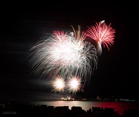 AUGUST 2025 – Fireworks explode over the sea pier in Grömitz, Germany, on a clear summer night. © Mark Zanzig/zanzig.com