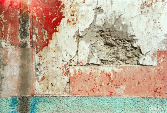 AUGUST 1988 – Detail of a run-down wall of a building in the historic town quarter of Olhão in Portugal. … More