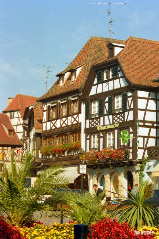 SEPTEMBER 2001 – The houses at the Place du Marché in the historic town center of Obernai, France. © Mark … More