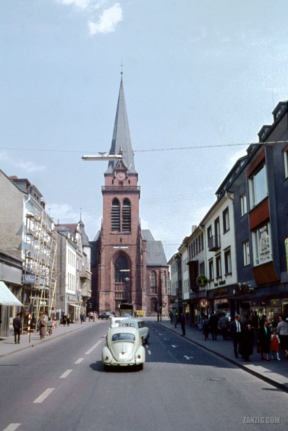 Heilig Kreuz Kirche, Bad Kreuznach, Germany, c. 1961 1961 – Frontal view of the Heilig Kreuz Kirche in Bad Kreuznach, Germany. Scan © Mark Zanzig/zanzig.com