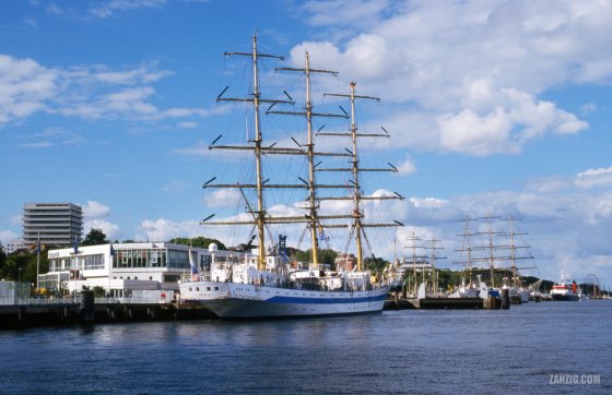 JUNE 1999 – During Kiel Week, the Russian tall ship Mir has been moored at the Ostseekai in Kiel, Germany. … More