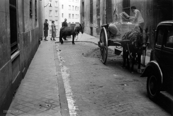 MARCH 1957 – Construcution works in a narrow street at the Chinese Quarter in Barcelona, Spain. © Mark Zanzig/zanzig.com