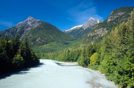 AUGUST 2002 – The Bella Coola River near Bella Coola, British Columbia, on a clear day. © Mark Zanzig/zanzig.com