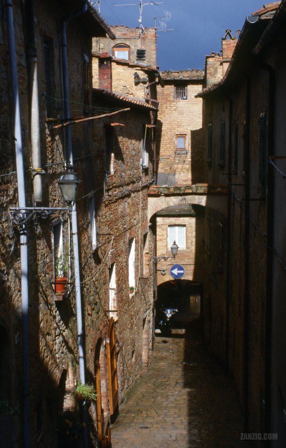 OCTOBER 2002 – A narrow alley in the historical town of Volterra, Tuscany, Italy. Photo © Mark Zanzig/zanzig.com