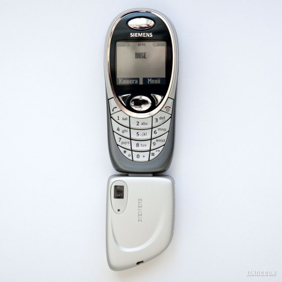 2007 – A gray metallic Siemens S55 mobile phone with attached QuickPic IQP-500 camera. Photo © Mark Zanzig/zanzig.com