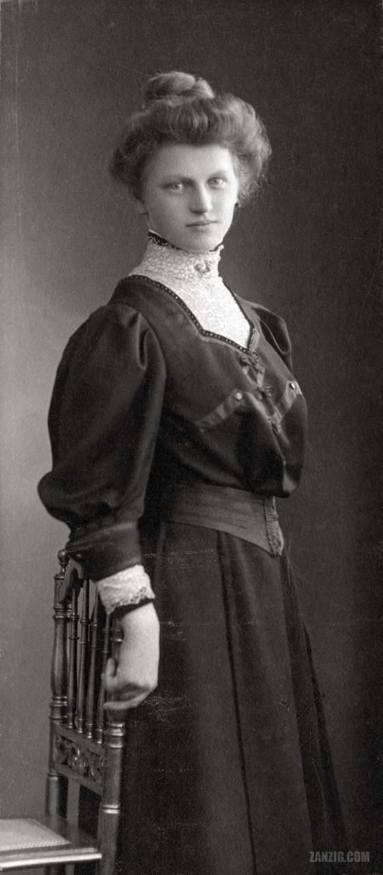 C. 1890 – A cabinet photo shows the portrait of a young lady in a photo studio in Braunschweig, Germany. … More