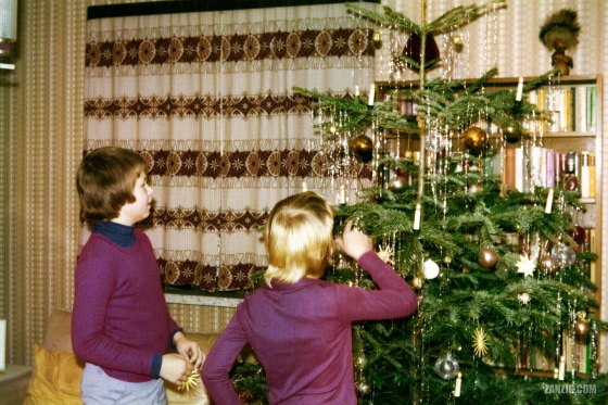 DECEMBER 1975 – Joined by a friend, Mark Zanzig admires the Chistmas tree in his home in Altenholz, Germany. © … More