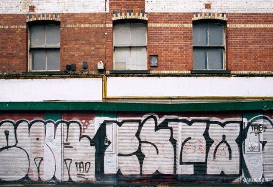 AUGUST 2003 – The street-facing walls of 1 City Quay in Dublin, Ireland, have been covered by graffiti. © Mark … More